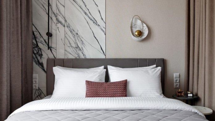 — в зоне сна размещена двуспальная кровать (160x200) с ортопедическим матрасом и белоснежным постельным бельем, ТВ со Smart-TV, Wi-Fi, кондиционер. Для хорошего сна предусмотрена штора блэкаут;