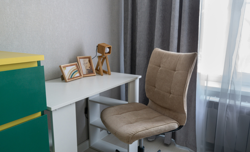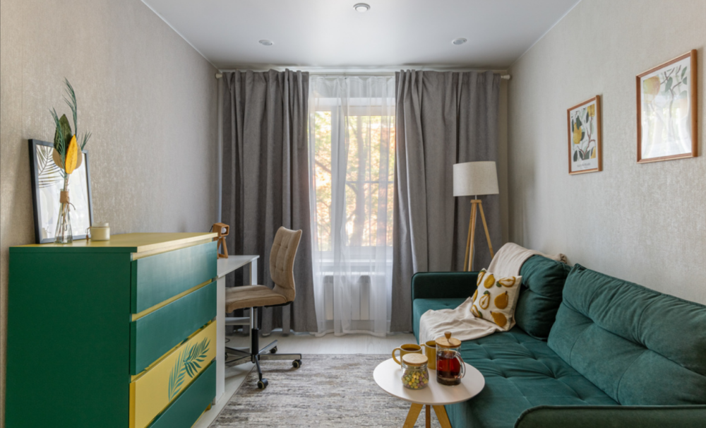 Во второй комнате размещен двуспальный диван (160x200) и рабочий стол, где можно посидеть за ноутбуком.