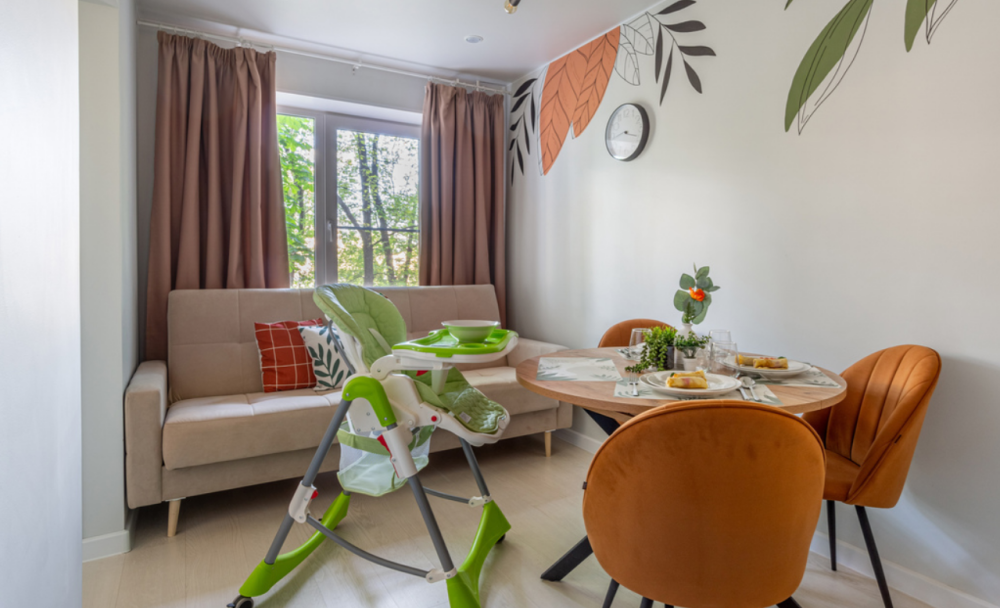 Для гостей с маленькими детьми предоставляется стульчик для кормления и кроватка-манеж с постельным бельем (платно).