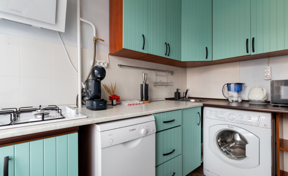 Кухня оборудована всей необходимой техникой и посудой (кофемашина, микроволновая печь, посудомоечная машина, стиральная машина, холодильник, газовая плита и электрический чайник).