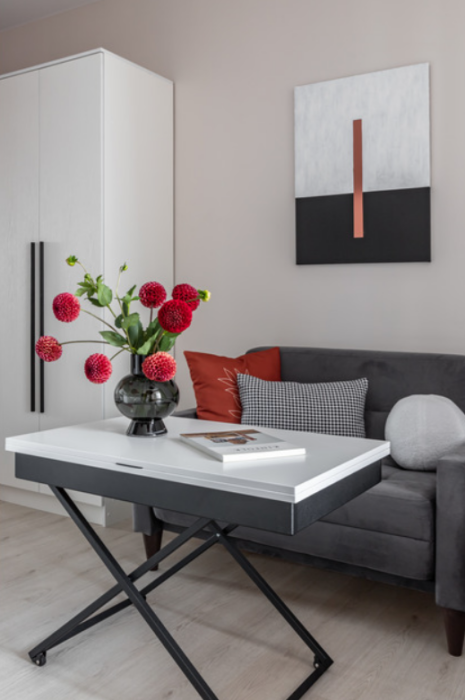 - стол-трансформер, который превращается из обеденного в журнальный.