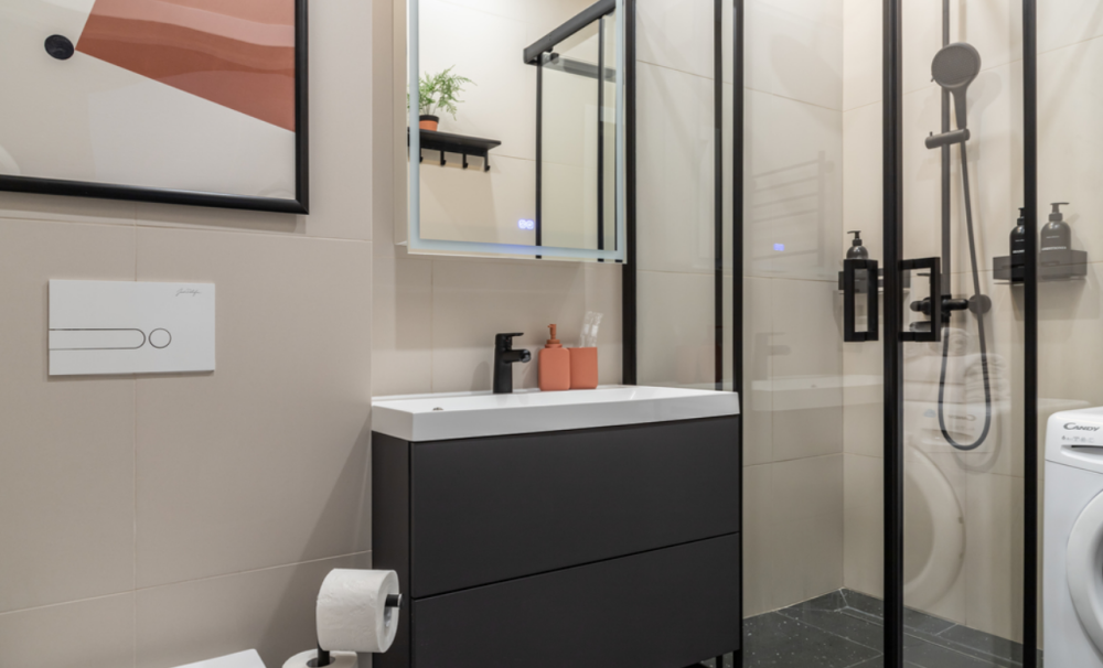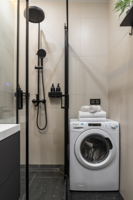 В душевой находится тропический душ, электрический полотенцесушитель, косметические средства (шампунь, кондиционер для волос, гель для душа, зубные наборы, мыло для рук, туалетная бумага), водонагреватель, стиральная машина с сушкой, фен и белоснежные полотенца. К услугам гостей также предоставляется Wi-Fi, утюг, гладильная доска, сушилка для белья, пылесос и много других приятных бонусов. ㅤ ㅤㅤㅤㅤㅤㅤㅤㅤ