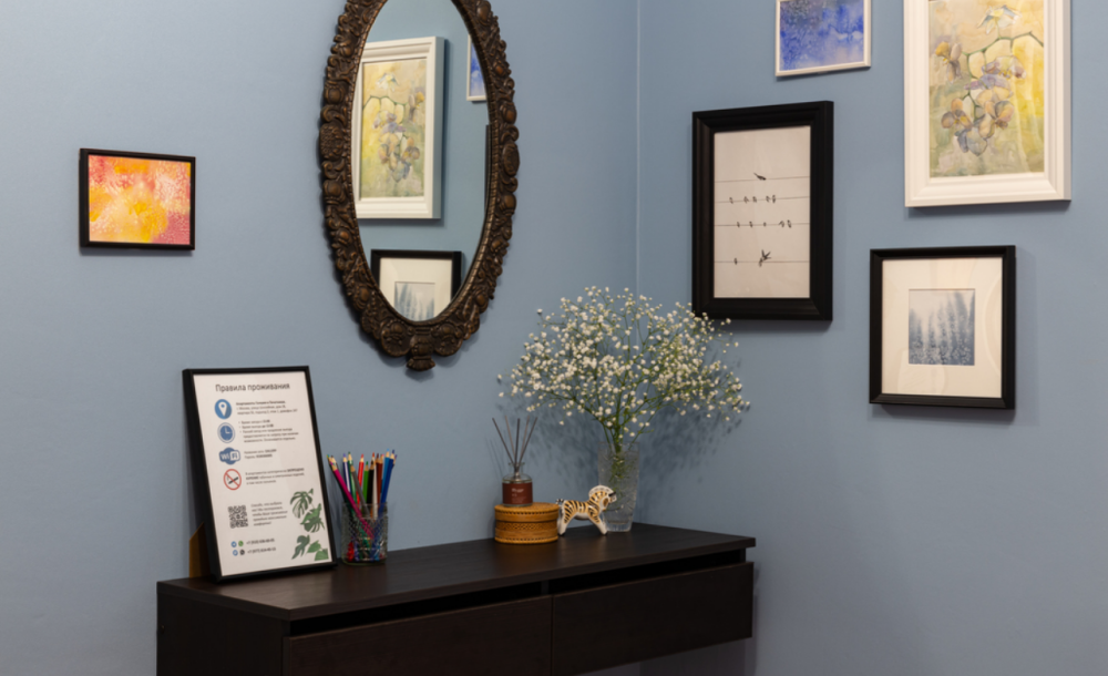 Семейные апартаменты «Галерея» предоставляются максимально для трех взрослых гостей. Для детей до 3 лет предоставляется детская кроватка (платно), стульчик для кормления, горшок, игрушки и книги.