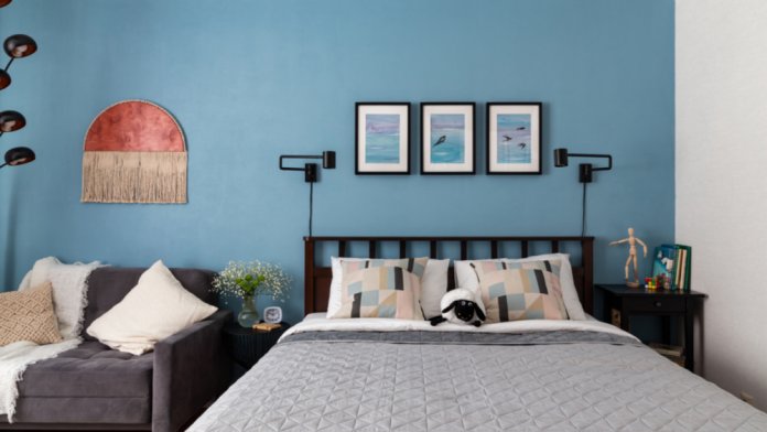 В комнате размещена двуспальная кровать с ортопедическим матрасом и белоснежным постельным бельем, и односпальный диван.