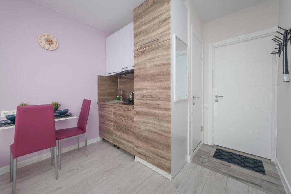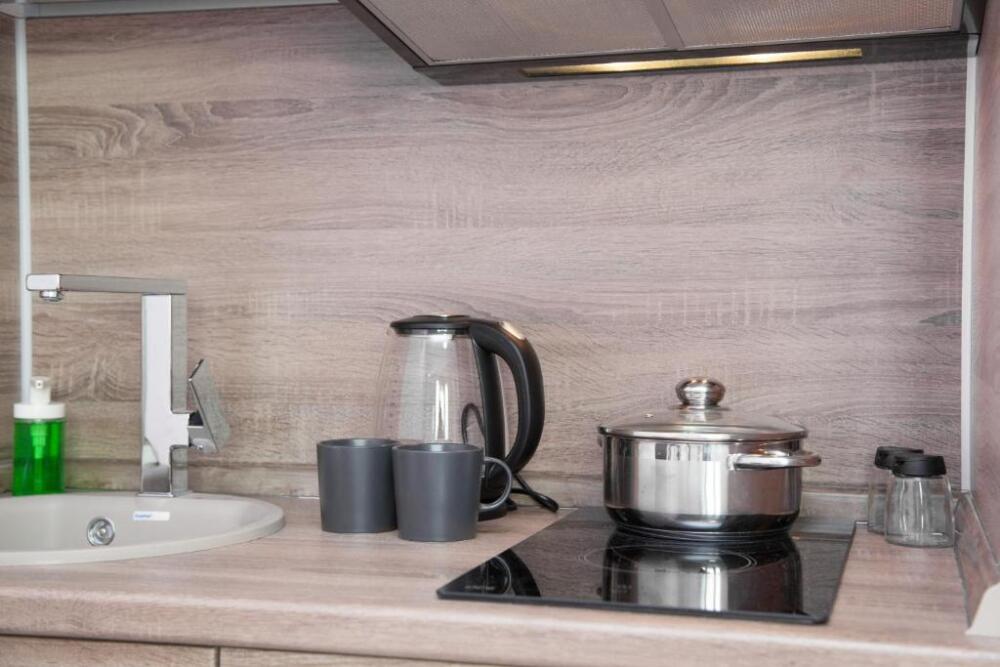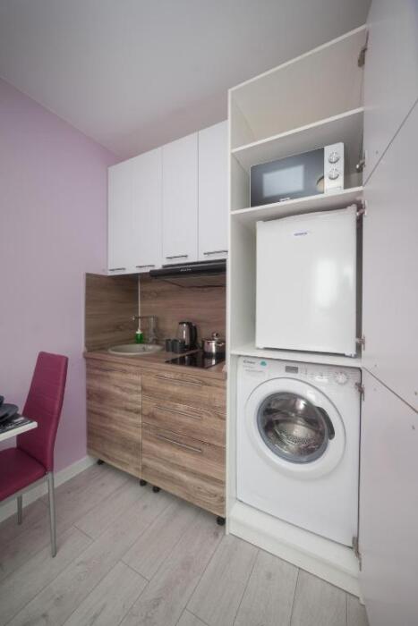 В студии есть все для Вашего отдыха: телевизор, постельное белье, средства гигиены, оборудованная кухня, стиральная машина, бесплатный Wi-Fi. Туалет и душ один на две студии.
