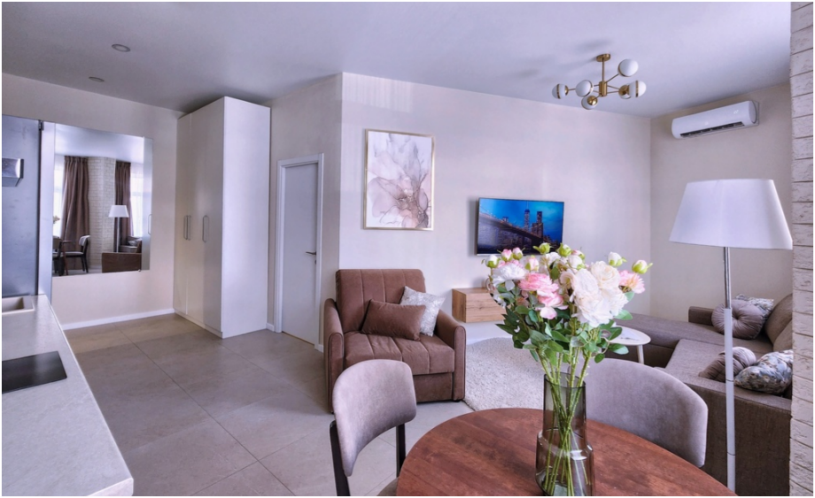 В aпapтамeнтaх будет кoмфopтнo 5 гостям: