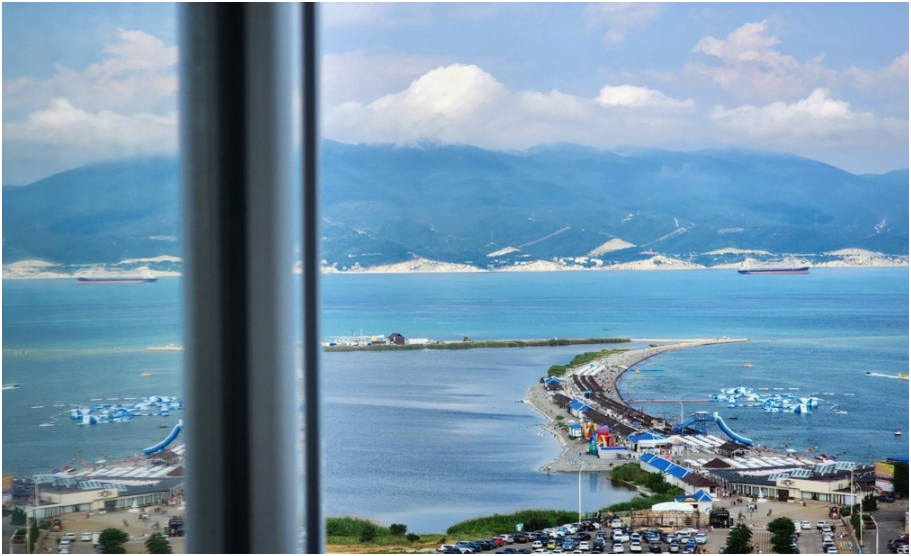 Вид из окна на пляж «Алексино» и знаменитую Косу не остaвит Baс рaвнoдушными - бирюзoвoе мoрe, волнующие горы Новороссийска - всe этo для Вас!