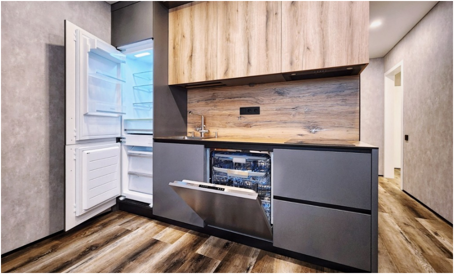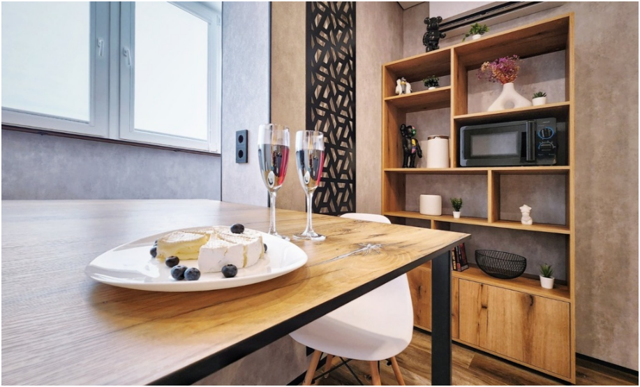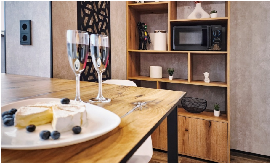 - Кухня со всей необходимой мебелью, техникой, в том числе посудомоечная машинка и посуда.