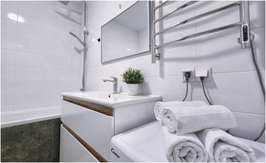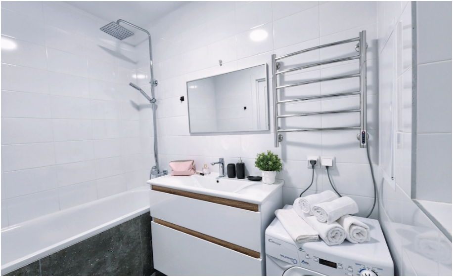 - Ванная комната со стиральной машиной.
