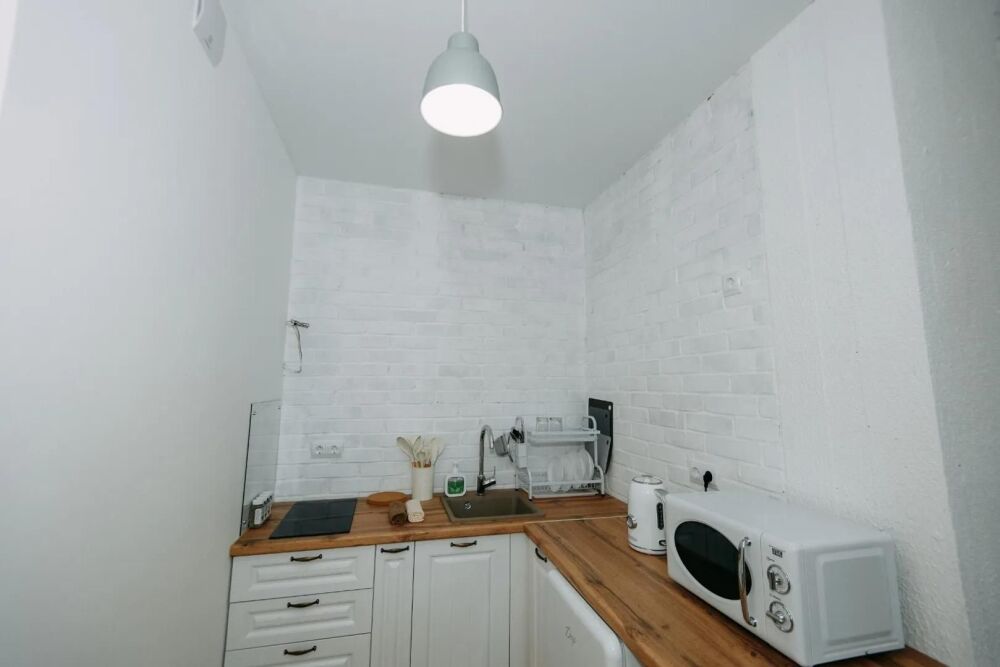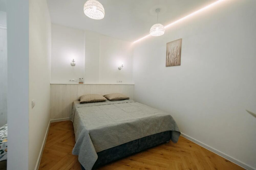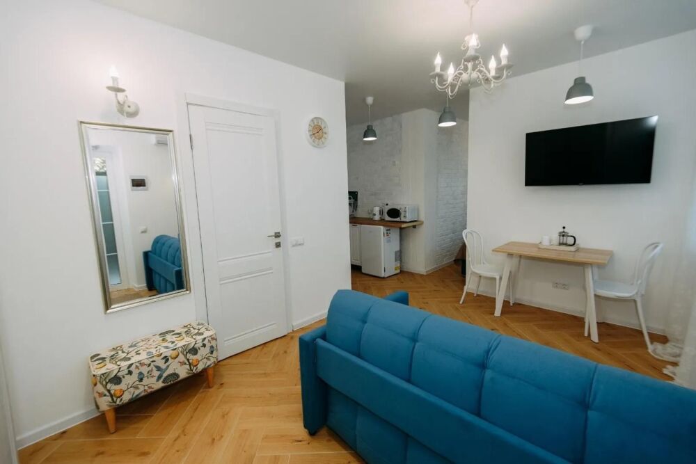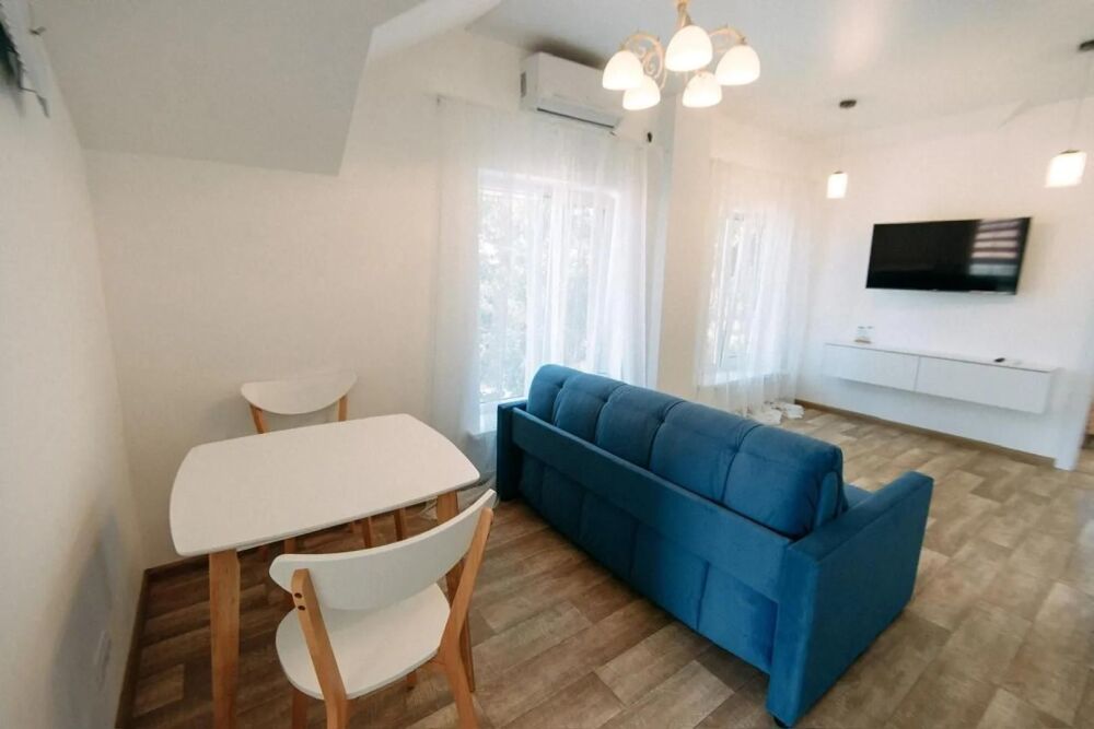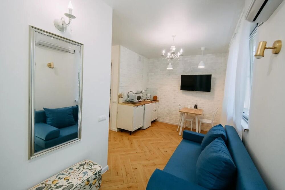 Абсолютно новая студия. Полностью укомплектована для Вашего отдыха. Есть зона спальни с двуспальной кроватью и ортопедическим матрасом, зона гостиной с комфортным раскладным диваном. Полностью оборудованная кухня: холодильник, плита с 2 конфорками, микроволновка, электрический чайник, набор посуды. Высокоскоростной интернет. Смарт ТВ.