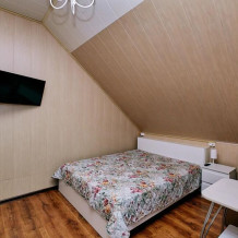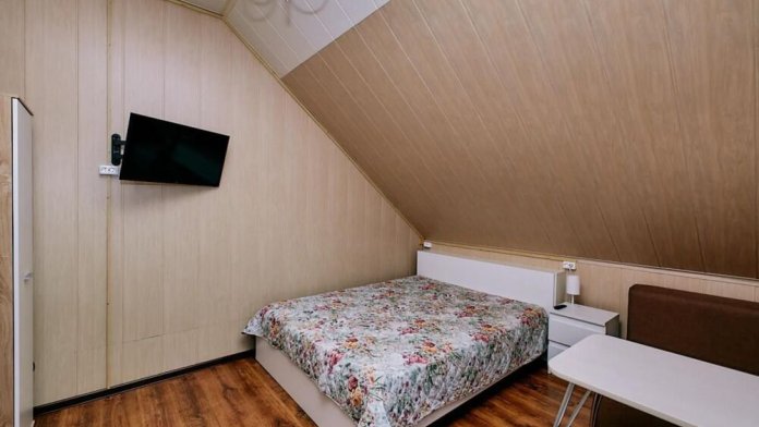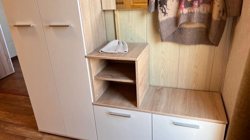 Из мебели: двухспальная кровать, раскладной диван, стол, шкафы, кухонный гарнитур. Кухня полностью оборудована: холодильник, плита, электрический чайник, посуда, доски, приборы.