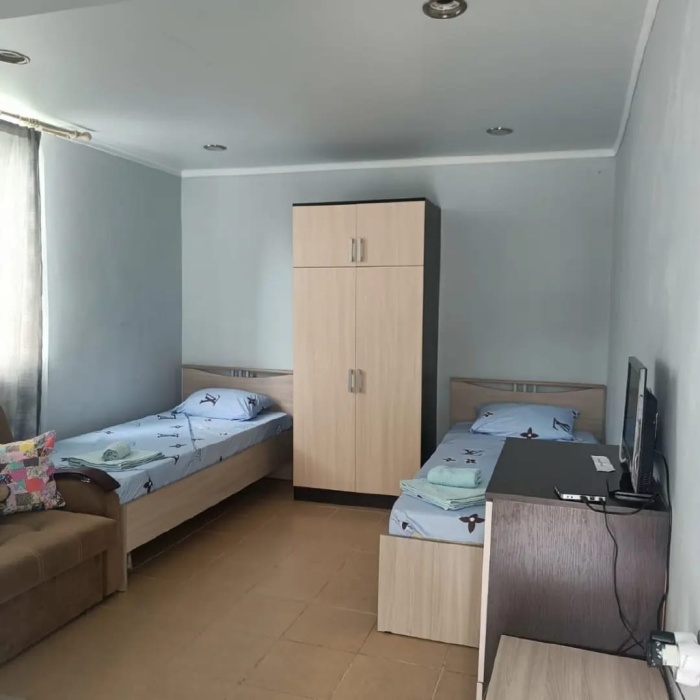Гостям, для проживания, предлагаются уютные номера со всем необходимым для комфортного отдыха. В каждом номере есть отдельный санузел, холодильник, кондиционер, телевизор, интернет.