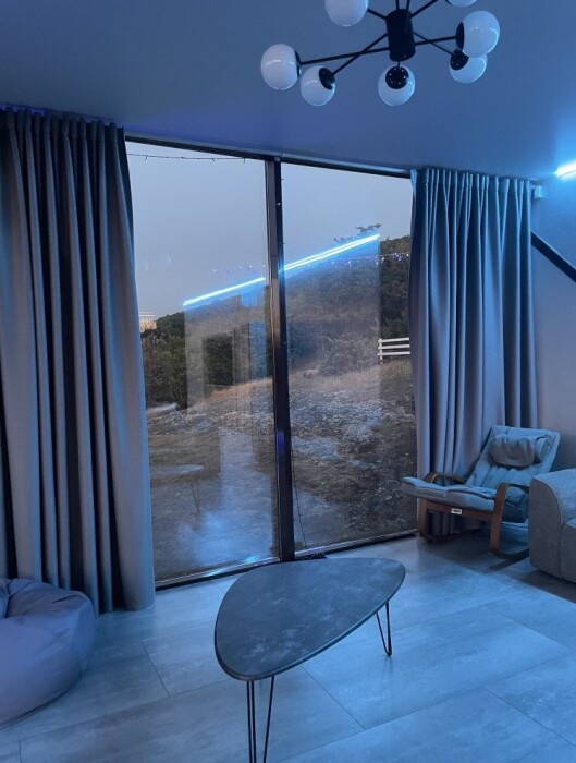 Из панорамных окон открывается потрясающий вид на горы и пещерные монастыри Шулдан и Челтер Мармора, их можно увидит через нашу подзорную трубу. Чистейший воздух за счет горных трав и можжевелов - гарантирован. На территории есть гостевой домик и основной дом с выходом на террасу и бассейн, есть барбекю зона, качели с широкой амплитудой раскачивания, 2 беседки для отдыха вместимость каждой до 5 человек, чан.