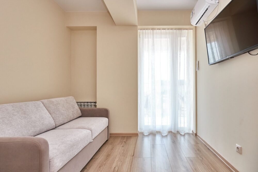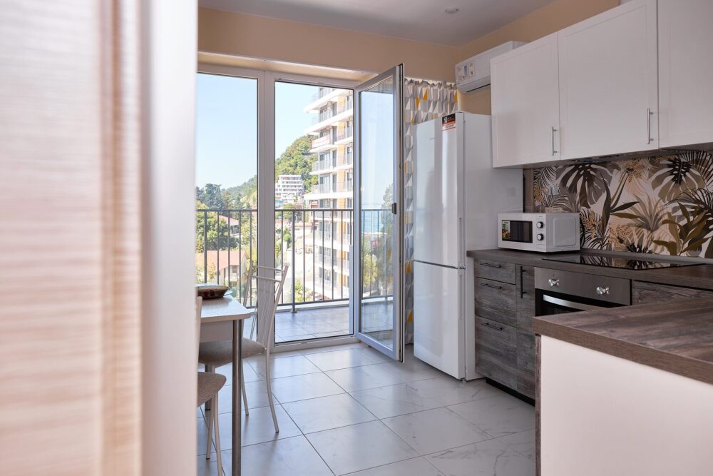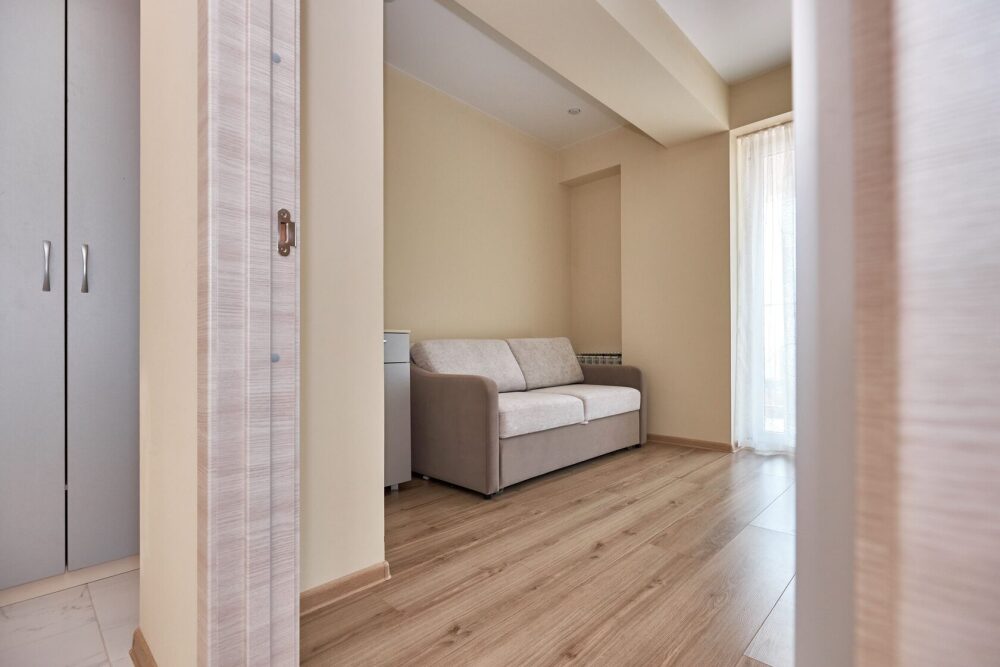 Парковка на территории не предусмотрена, но есть возможность оставить авто за пределами комплекса, либо на платной автостоянке в 100 м от входа в ЖК. До моря буквально 2 минуты пешком. Пляж широкий, чистый, с обновленной набережной и развитой инфраструктурой. Считается одним из лучших на побережье и носит статус эко. Рядом множество кафе, столовых, баров, ресторанов, павильонов с пляжными принадлежностями, сетевых магазинов и т. д.