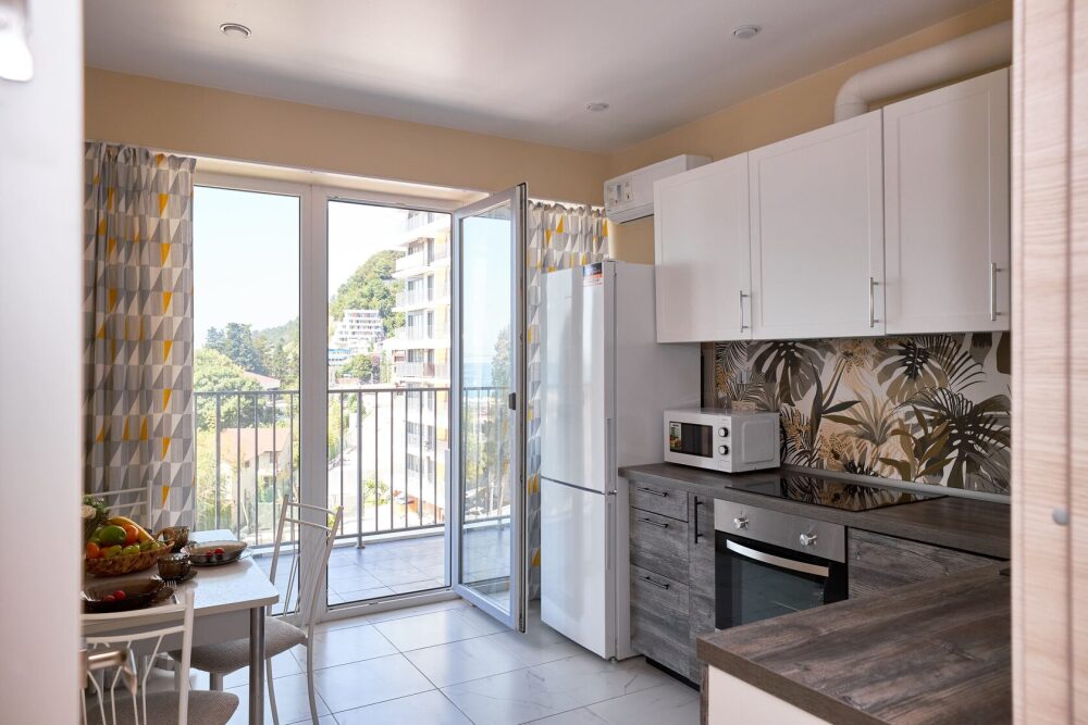 Просторная двухкомнатная квартира «Вig caravella» с прямым видом на море. В квартире имеется всё необходимое для комфортного проживания семьи из 2-4 человек. Гостям предоставляется удoбный двухcпaльный диван в просторной гостиной и диван-кровать в отдельной спальной комнате, телевизор c плocким экpаном в каждой из комнат, Wi-fi, кондиционеры, просторный балкон-терраса с прекрасным видом на море. Имеется отдельная кухня с балконом, со всеми необходимыми принадлежностями. Чайник, микроволновая печь, холодильник, посудомойка, духовой шкаф, посуда и варочная поверхность для самостоятельного приготовления еды, посудомоечная машина, стиральная машина.