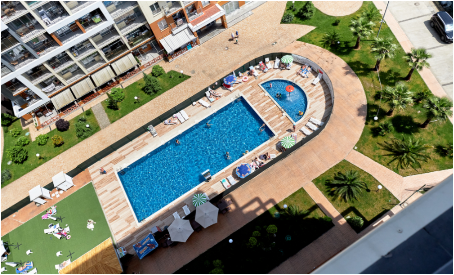 В комплексе имеется бассейн с подогревом (платный, работает с мая по октябрь), для детей и взрослых, закрытая придомовая территория, детские и спортивные площадки, детский клуб, кафе. До моря буквально 2 минут пешком. Пляж широкий, чистый, с развитой инфраструктурой. Считается одним из лучших на побережье, второй после Имеретинки. Рядом множество кафе, столовых, баров, ресторанов, магазинов. Ж/д станция в 300 м от комплекса. До центра Сочи 15 минут на Ласточке (станция рядом), на маршрутке 20−25 минут. Аэропорт в 40 минутах езды на автомобиле или в 50 минутах езды на ласточке.