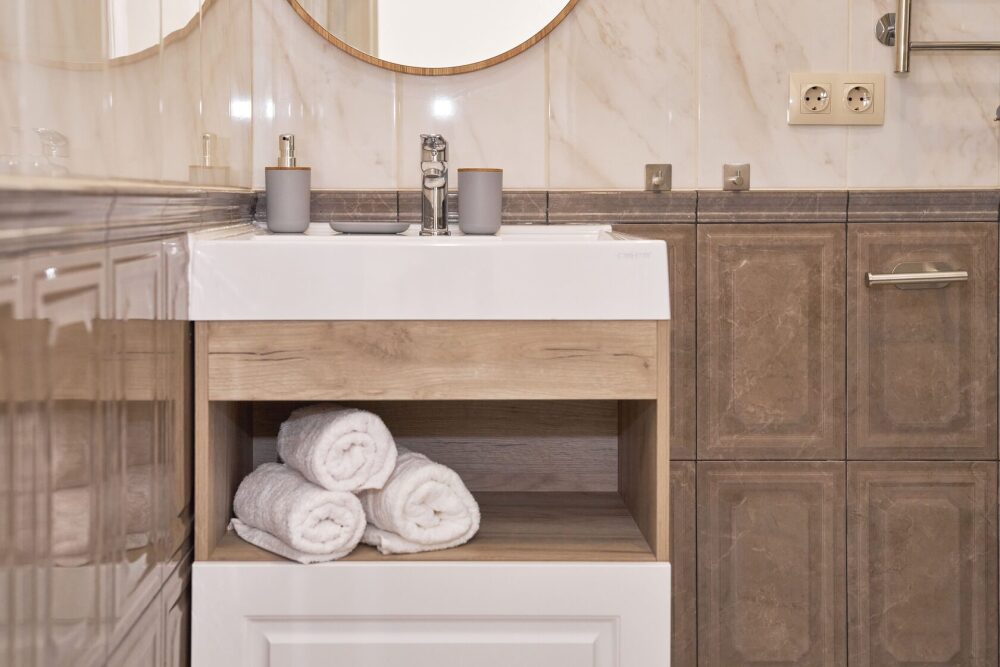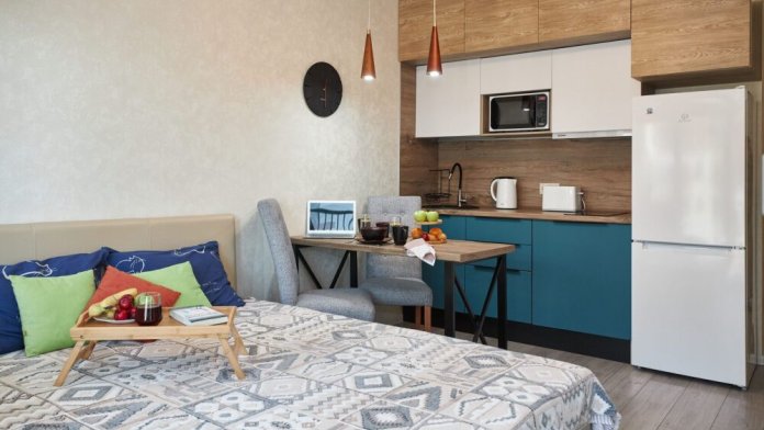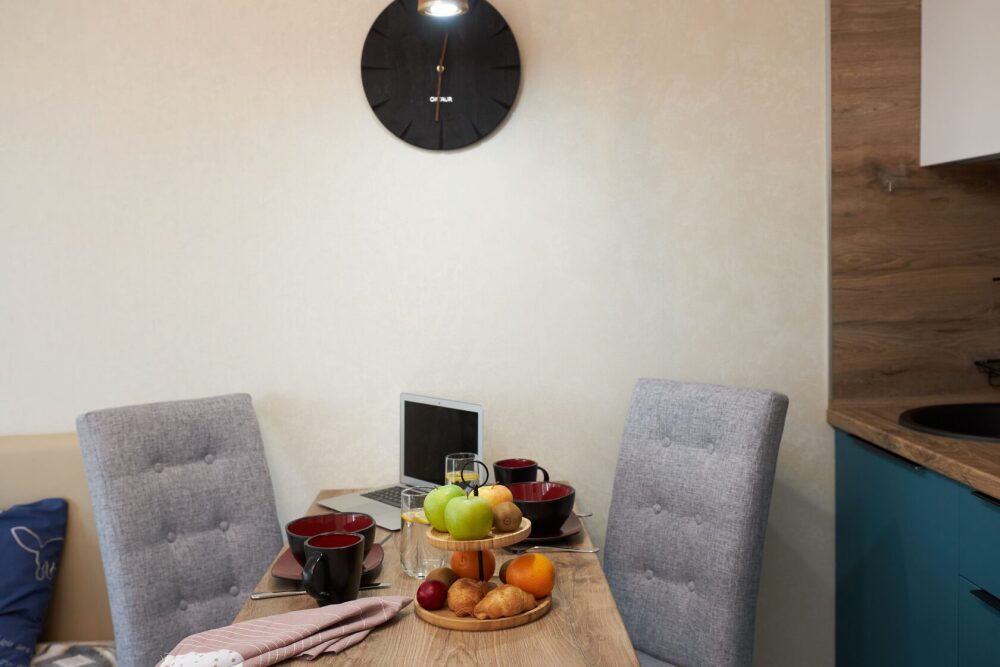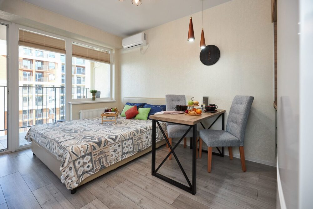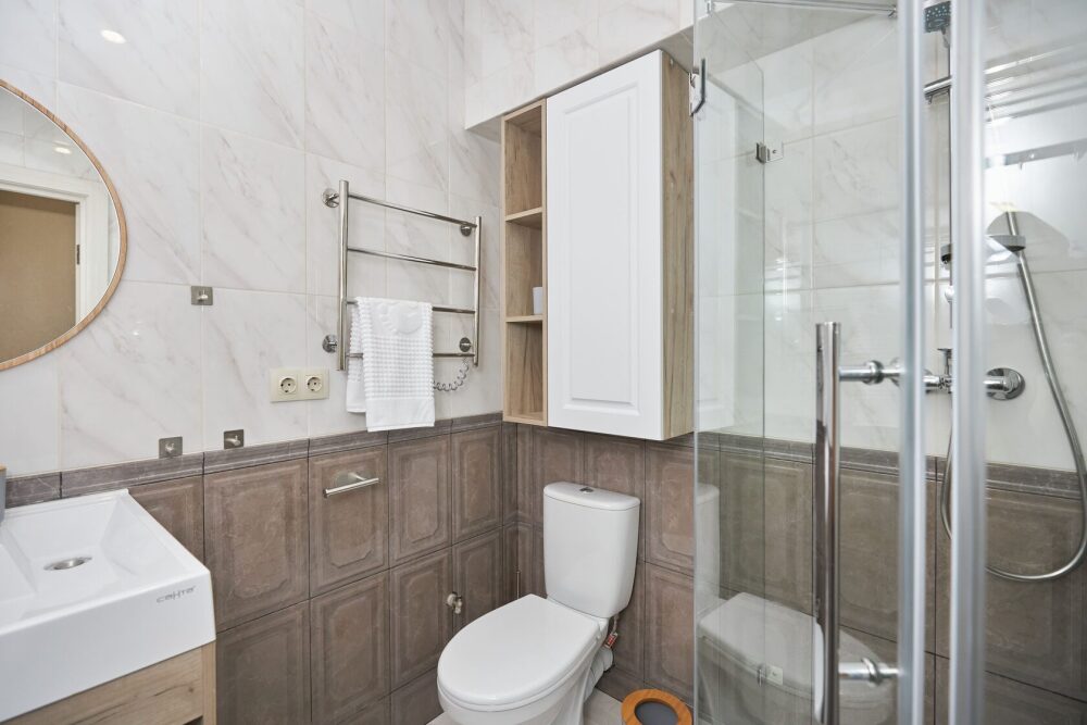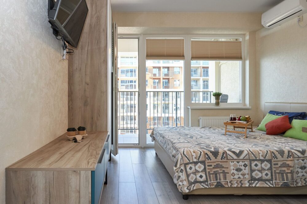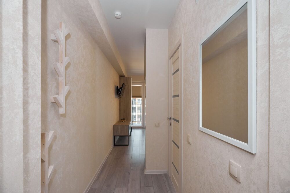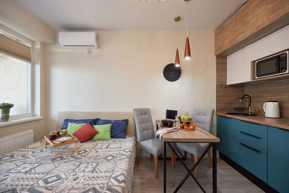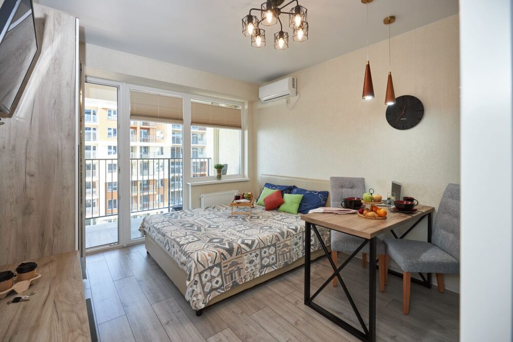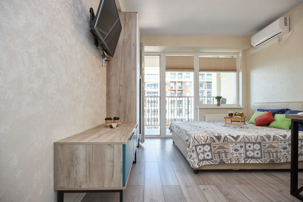 Гостям предоставляется двухспальная кровать и возможно ещё одно cпальнoe меcтo по запросу. Телевизор c плocким экpаном, Smаrt Тv и кaбельными канaлами, Wi-fi, кондиционер, балкон с мебелью. Имеется кухонная зона со всеми принадлежностями. Чайник, микроволновая печь, тостер, холодильник, посуда и варочная поверхность для самостоятельного приготовления еды. Санузел оснащен раковиной с зеркалом, душевой кабиной, унитазом, полотенцесушителем, стиральной машиной.
