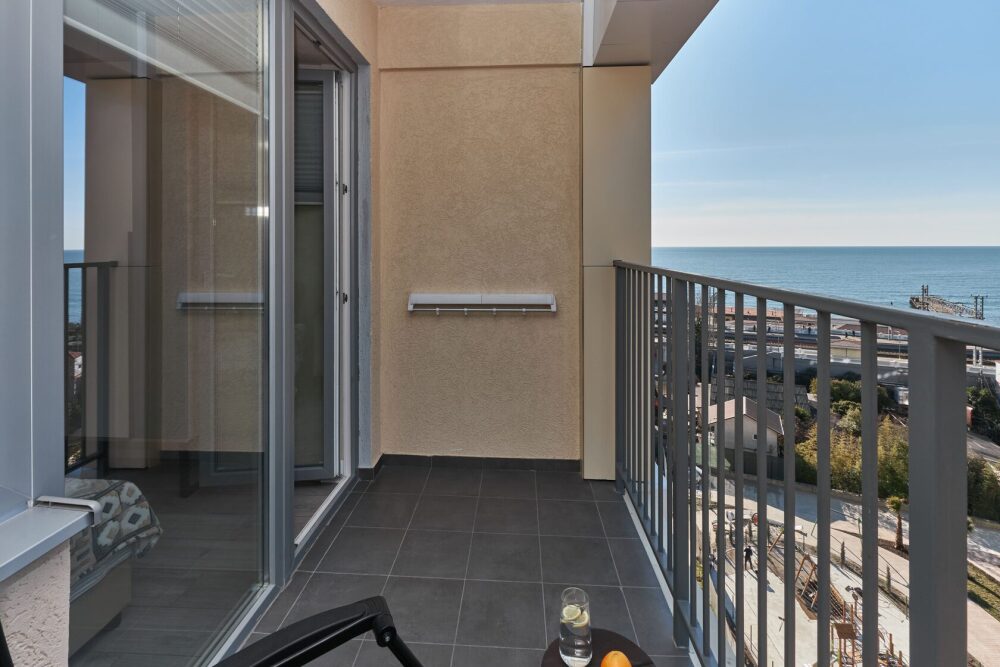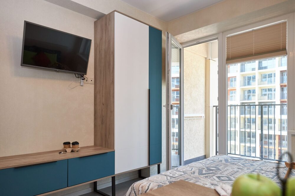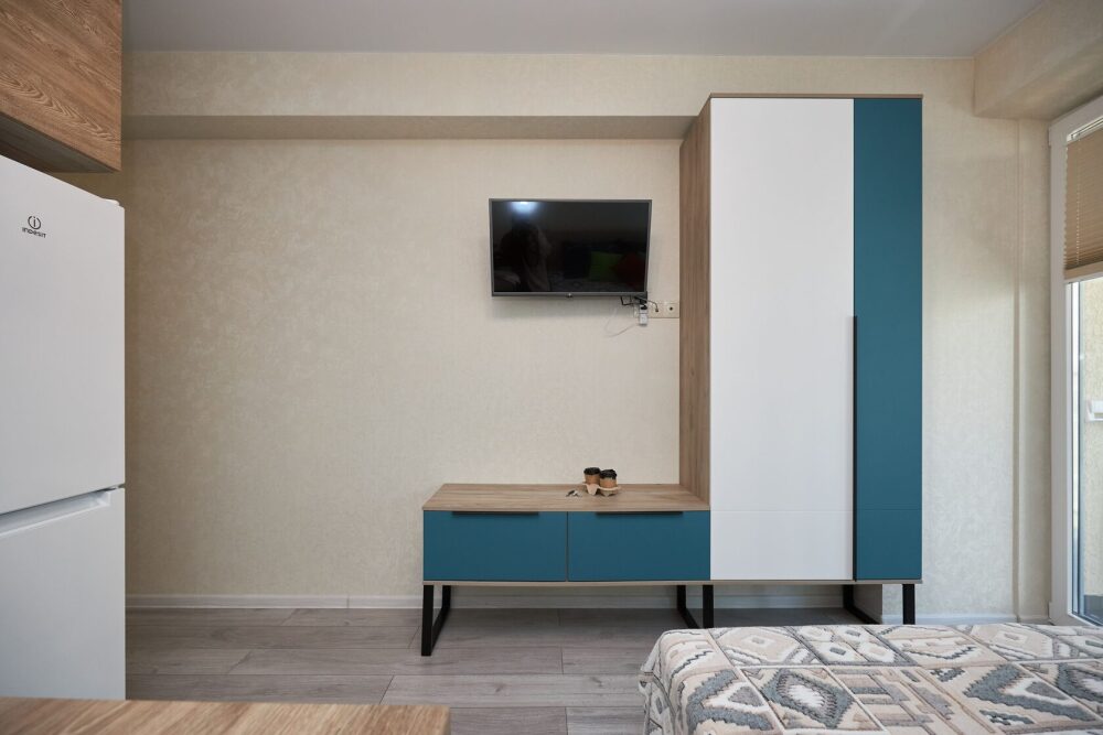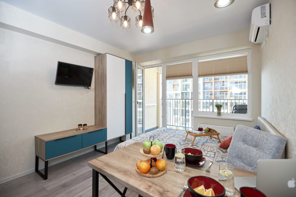 Уютная студия «Аquamarine» на высоком этаже, с боковым видом на море и горы. В квартире есть вся необходимая мебель и теxникa. Подходит для размещения семьи из 2 человек.