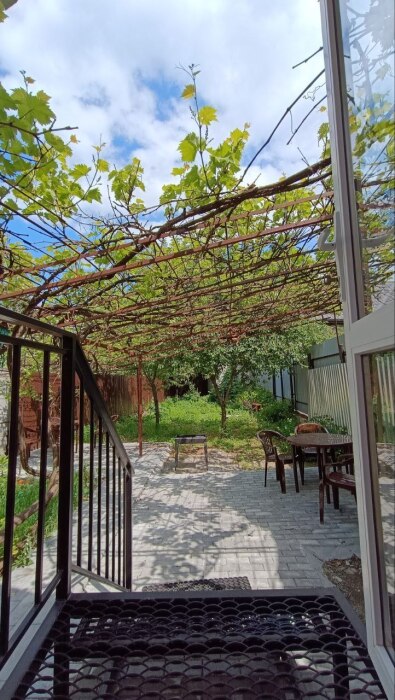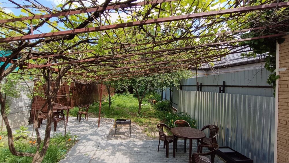 Внутри двора есть стол и стулья и мангальная зона, где Вы можете провести время под тенистой верандой и наслаждаться прекрасной погодой.
