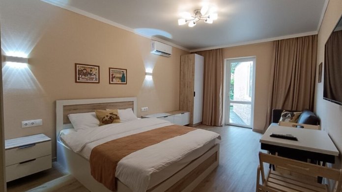 Студия оснащена всем необходимым для комфортного проживания, включая двуспальную кровать с комфортным матрасом и тахту для третьего гостя, сплит систему, телевизор , микроволновка, чайник. На кухне Вы найдете всю необходимую посуду и другие предметы быта, которые могут пригодиться во время Вашего пребывания. Постельное белье и полотенца уже подготовлены для Вашего удобства. Так же имеются утюг и стиральная машина.