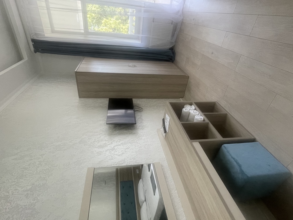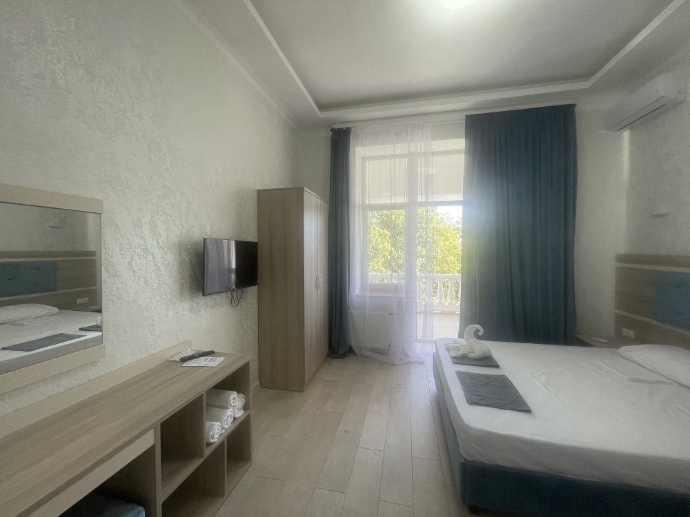 Номер на первом этаже, выходящий прямо в парк. Ремонта нет, все старое. Новые только шкаф купе и холодильник. В ванной только горячая вода, даже в туалете. Ванная без шторки, брызги при купании текут на пол, из-за этого сырость. В здании на верхних этажах ремонт сделан, но до 1 этажа пока не дошел. Периодически вырубают электричество. Ситуацию спасает, как всегда, природа. Постельные принадлежности и полотенца новые, не придерешься. Горничная Полина, очень отзывчивая. Спасибо ей большое.
