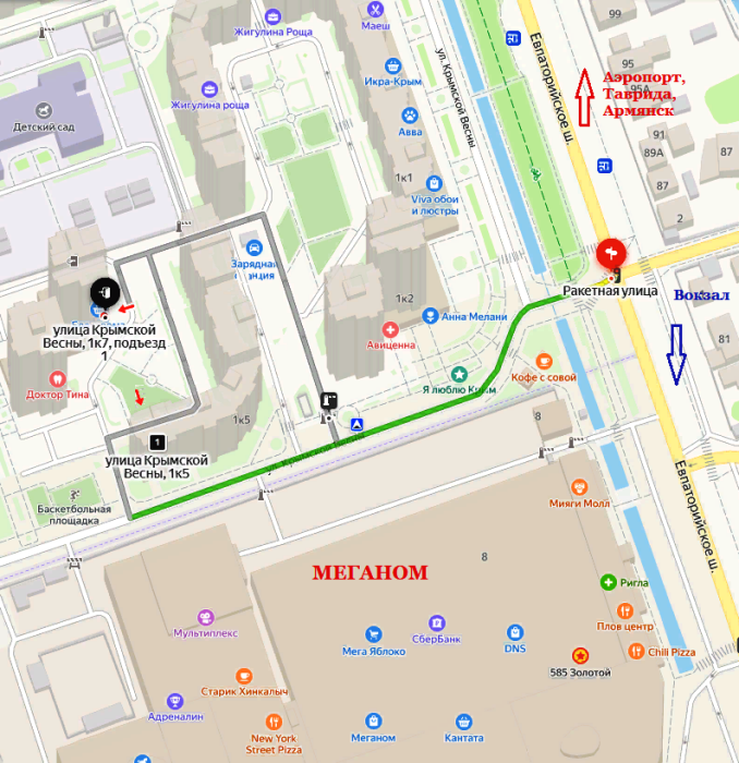 Торговый комплекс «Меганом» - 500 м. В ТРЦ располагаются гипермаркет, Сбербанк, кафе, аптеки, пандориум, кинотеатр