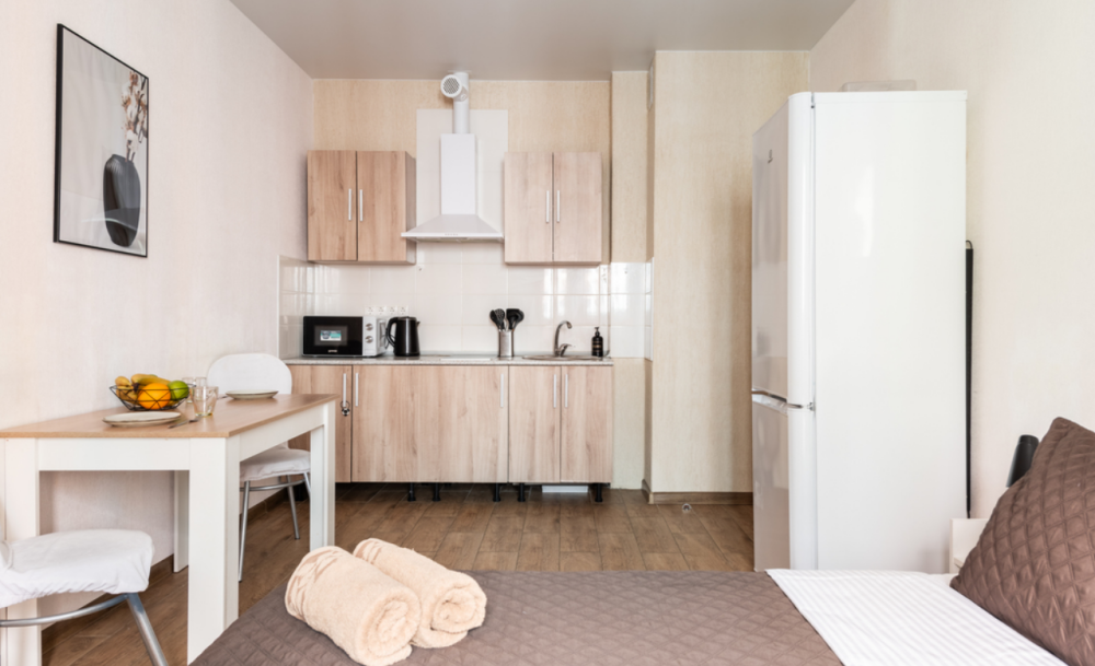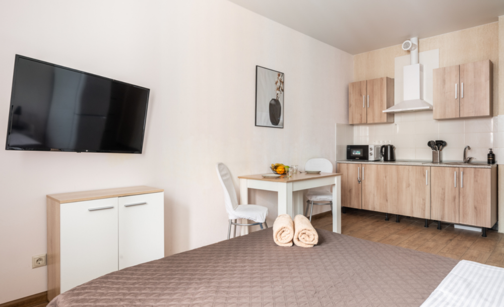 - Телевизор с функцией смарт ТВ для разнообразных развлечений. Холодильник, плита, фен, утюг, стиральная машина - для вашего уюта и комфорта.