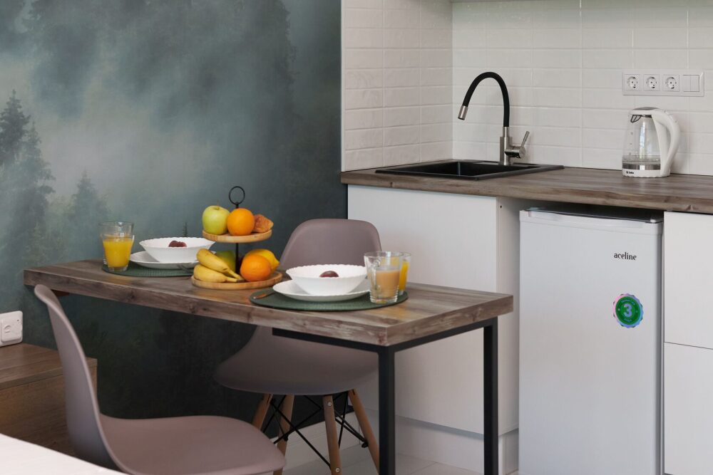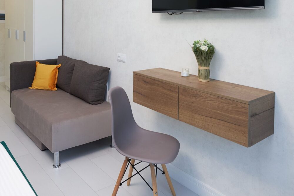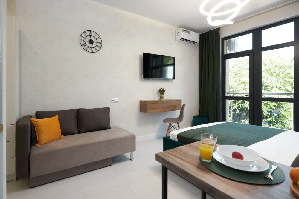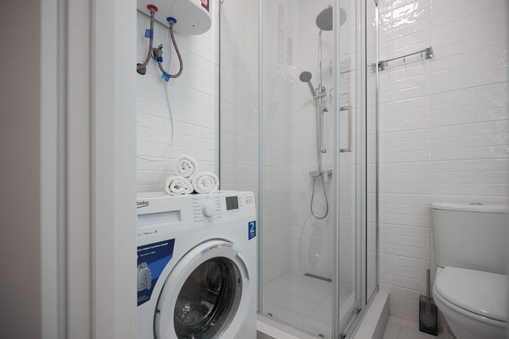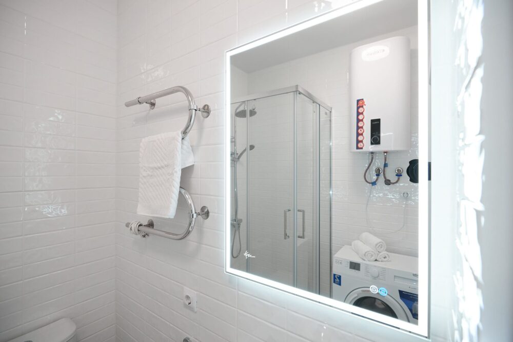 В квартире есть все необходимое для проживания семьи из 2-3 человек. Гостям предоставляется двухспальная кровать и удобный двухместный диван-кровать, белье и полотенца, телевизор c плocким экpаном, Smаrt Тv и кaбельными канaлами, Wi-Fi, кондиционер, фен, утюг с гладильной доской, балкон с мебелью. Имеется кухонная зона со всеми принадлежностями. Чайник, микроволновая печь, тостер, духовой шкаф, столовые приборы и посуда, варочная поверхность для самостоятельного приготовления еды. Санузел оснащен раковиной с зеркалом, водонагревателем, душевой кабиной, полотенцесушителем и унитазом.