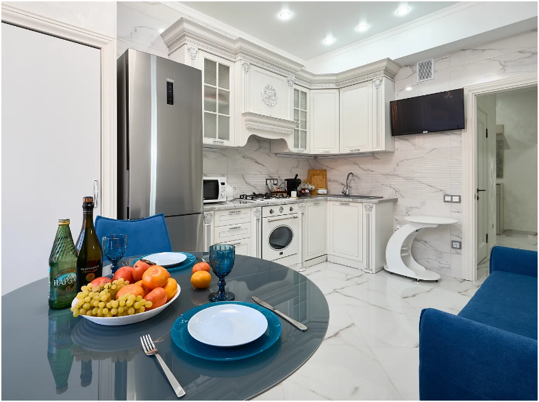 Предусмотрено все для комфортного размещения: большая 2-спальная кровать 160*200 с хорошим ортопедическим матрасом, большой 320*200 раскладной очень удобный диван, кресло-кровать 90*200, диван на кухне 140*200. Кухня оснащена всей необходимой посудой и техникой, установлена посудомоечная машина, имеется кофемашина. Парковка бесплатно во дворе комплекса, места всегда имеются.