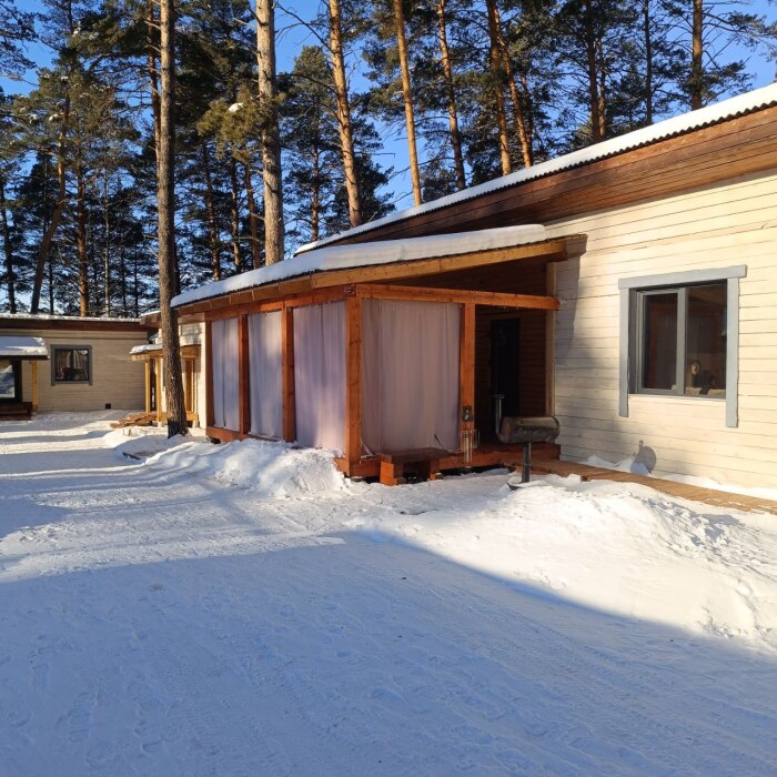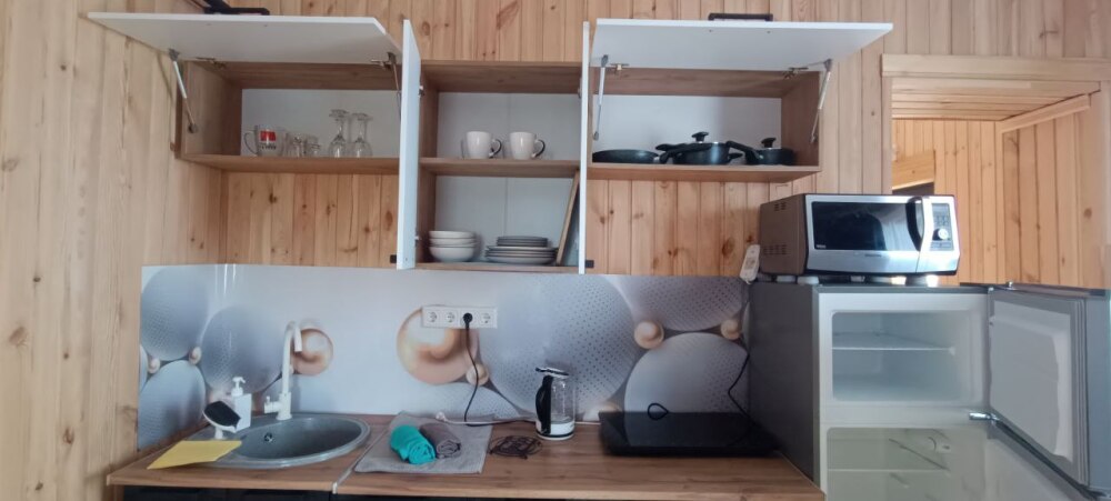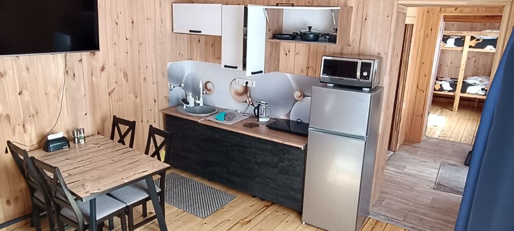 Площадь дома 55 кв.м. Вместимость до 5 человек.