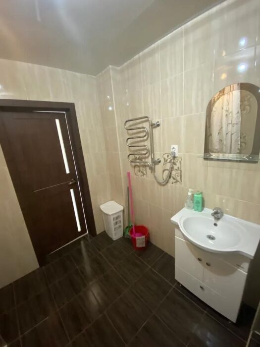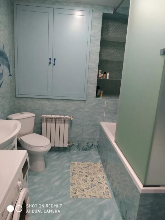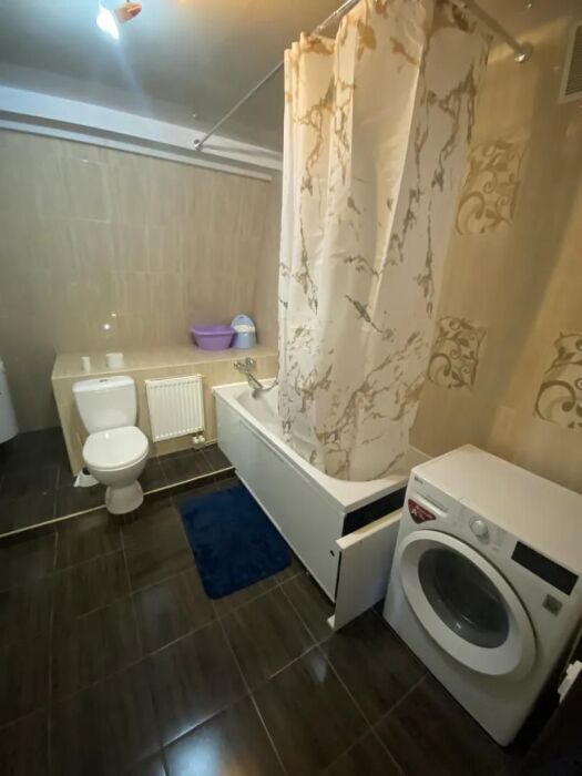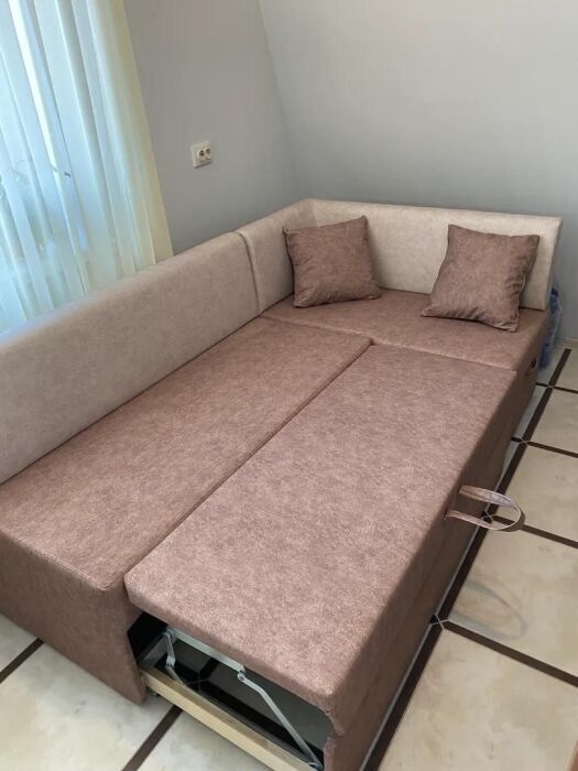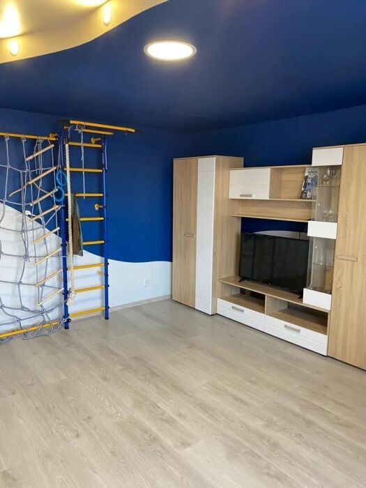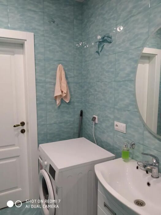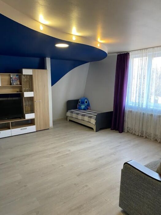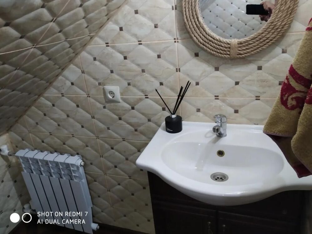 Практически вся мебель из натурального дерева. Двухуровневая квартира с дизайнерским ремонтом на 4 этаже возле моря. Из окна (с балкона) вид на город и частично залив.