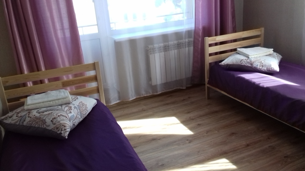 Номер с тремя отдельными кроватями (размер ,8*2,0), тумбочками, шкаф, телевизор. В номере есть свой балкон. Кухня (на три номера) и два санузла (на три номера) общие.
