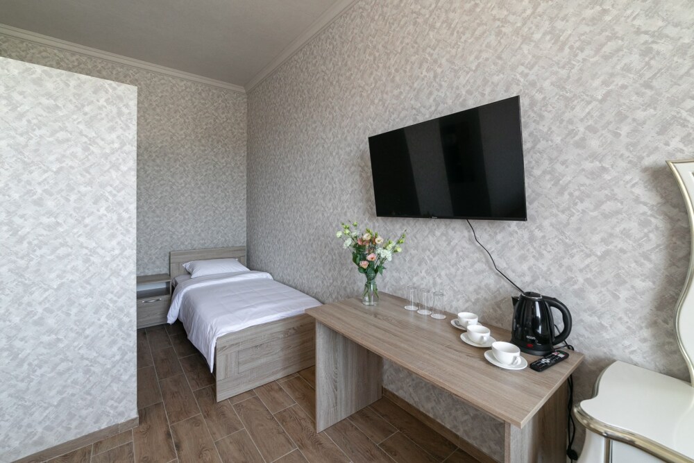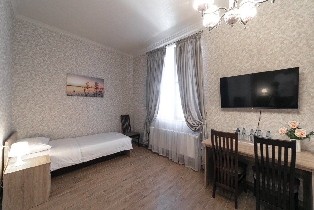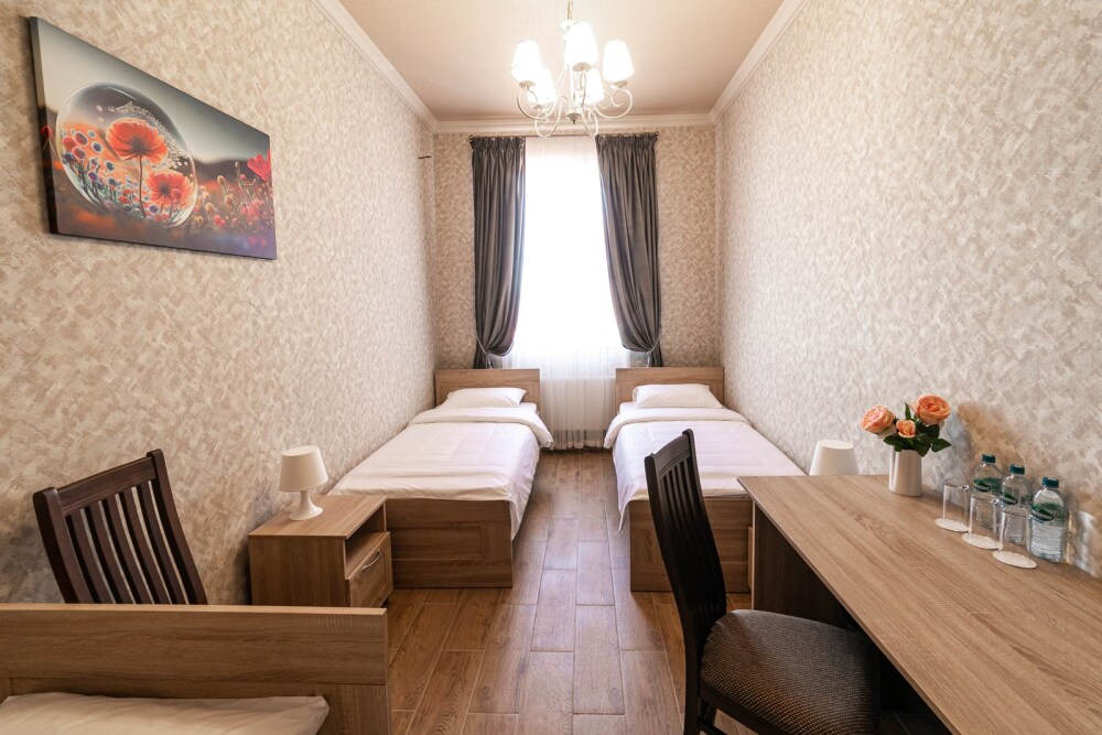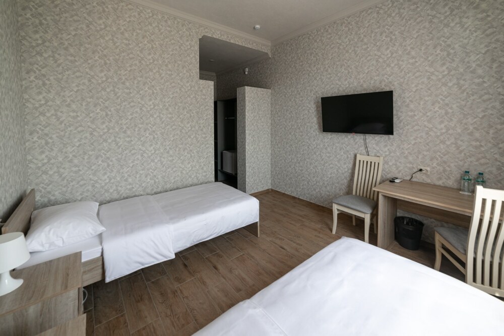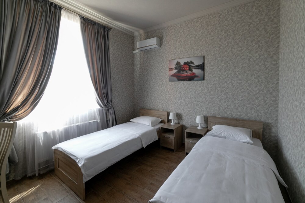 Уютный однокомнатный номер с одной двуспальной или двумя односпальными кроватями.