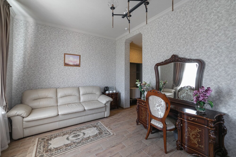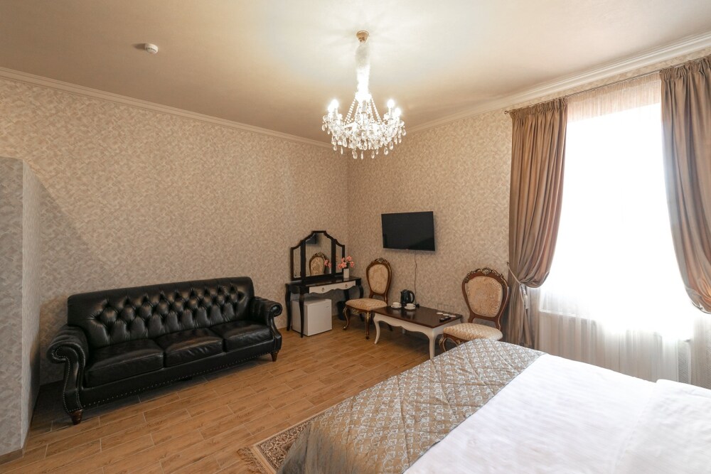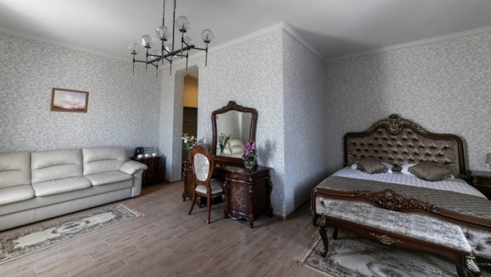 Просторный однокомнатный номер с двуспальной кроватью и двухместным раскладным диваном.