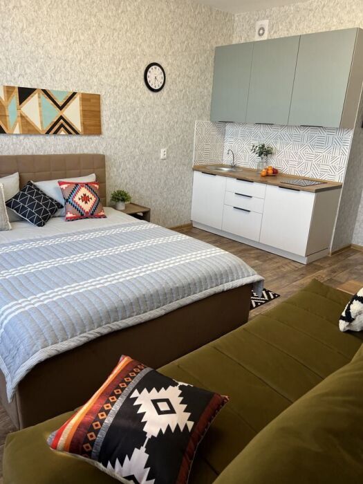 - Для Вашего комфортного отдыха и сна мы оснастили квартиру двухспальной кроватью с ортопедическим матрасом и диваном на независимом пружинном блоке с большим и ровным спальным местом.