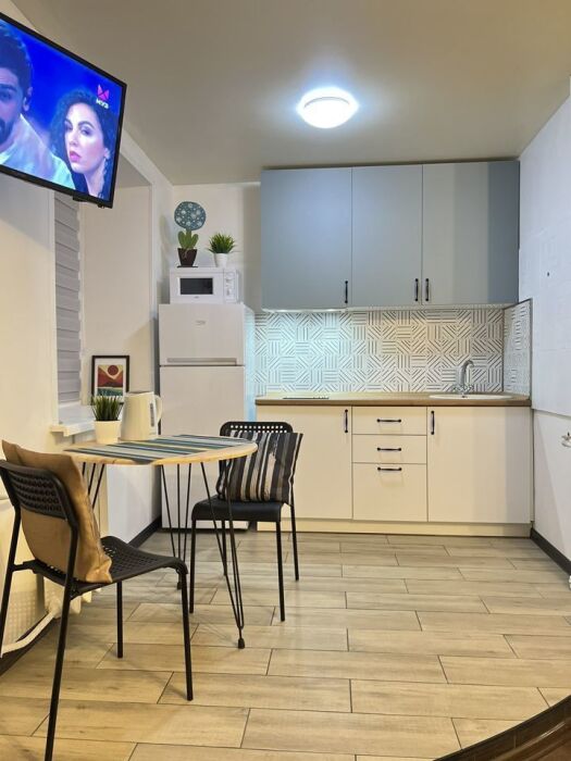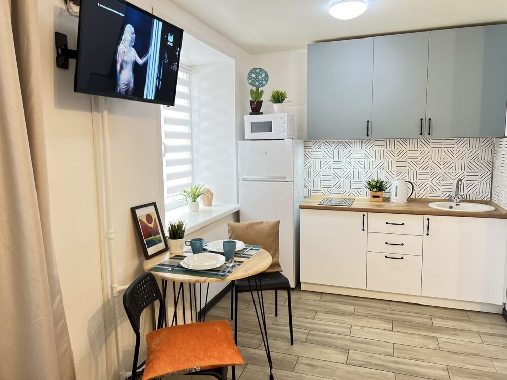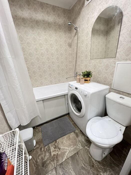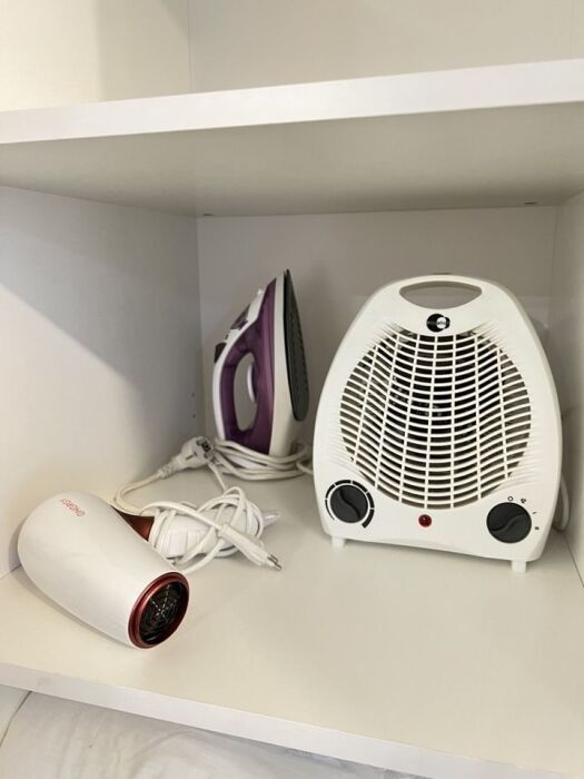- Бытовая техника: телевизор со Смарт ТV, холодильник, микроволновая печь, электрочайник, утюг, фен, стиральная машина, водонагреватель.