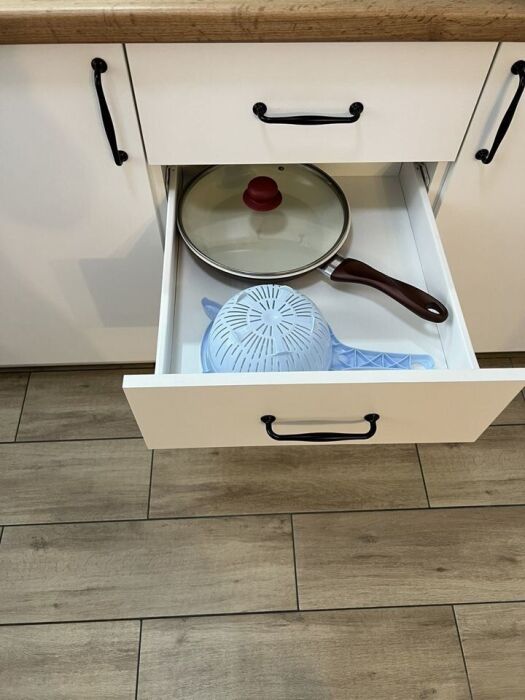 - Посуда для приготовления пищи и сервировки стола (кастрюли, сковорода, тарелки, кружки, стаканы, салатник , приборы).