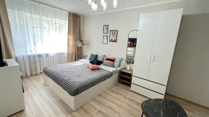 - Двухспальная кровать с удобным ортопедическим матрасом 1.60 *2.00 м. и диван, который раскладывается 1.30* 1.90 м. (спальные места: 2+2). По умолчанию, когда бронируете на 2 гостей предоставляется 1 комплект постельного белья, дополнительный комплект 300 руб. Предупреждайте заранее.