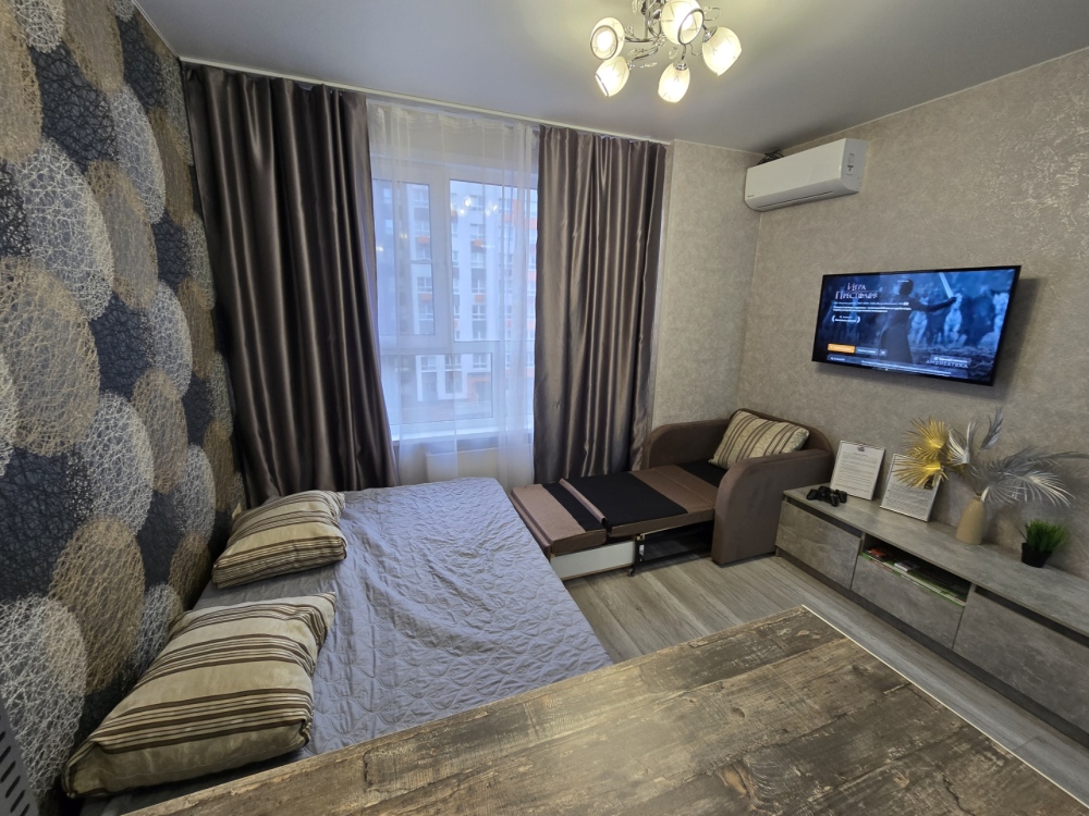 Всё необходимое для комфортного проживания: смарт – телевизор, приставка с 2 джойстиками и играми от Денди, PlayStation1 и другими, Wi-Fi, кондиционер, стиральная машина, фен, гладильные принадлежности, полноценная кухня с большим холодильником, варочной поверхностью, микроволновой машиной, духовым шкафом, кофемашиной для приготовления ароматного зернового кофе (молотый кофе, Nespresso и Dolce Gusto), чайником, тостером, полным комплектом посуды, чаем и кофе! Всегда свежее постельное белье, полотенца, средства личной гигиены. Бесплатная парковка на территории ЖК.