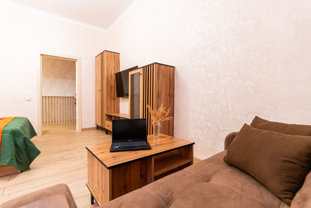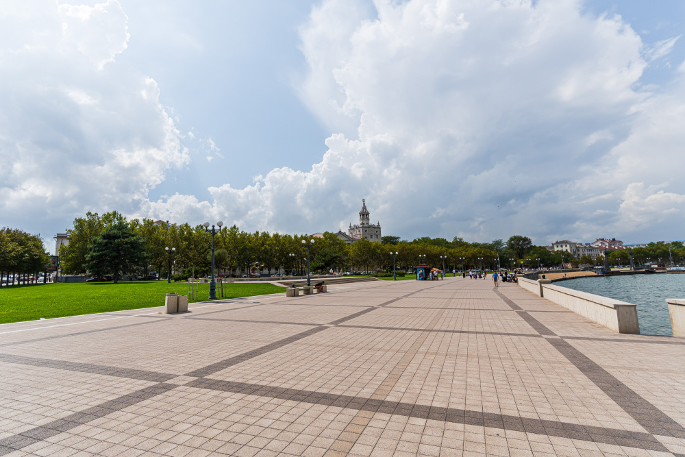 Центр Новороссийска, море рядом (2 минуты пешком) Крейсер Михаил Кутузов и Морвокзал. Рядом площадь Новороссийской Республики. Начало набережной от крейсера Михаил Кутузов с лучшими кафе, ресторанами и развлечениями. В доме супермаркет Магнит.