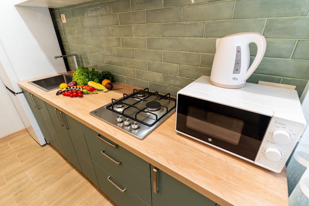 В квартире есть кухня с микроволновкой и всей необходимой техникой. Размещение до 4 человек. Мы рады гостям с детьми.