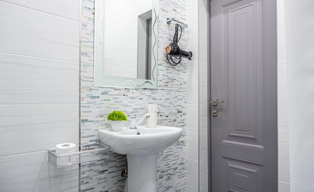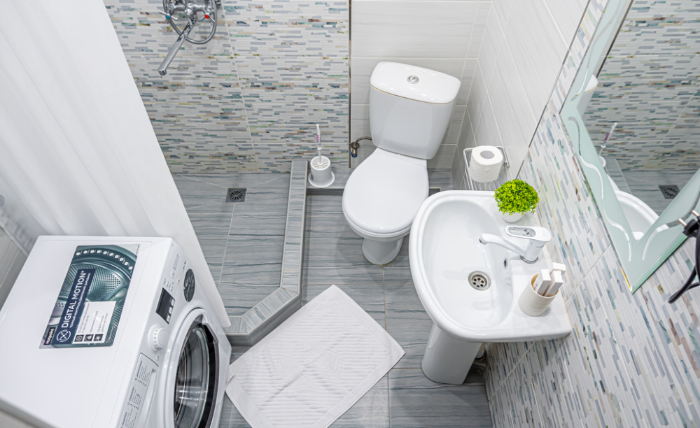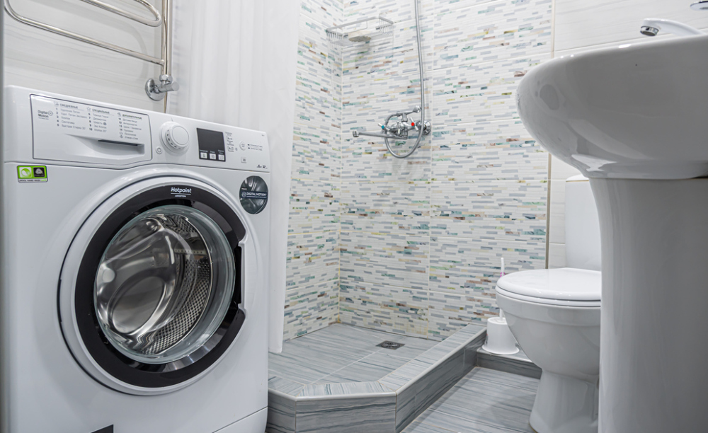 стиральная машина, фен, утюг, гладильная доска, тапочки, сушилка, шампунь, мыло.