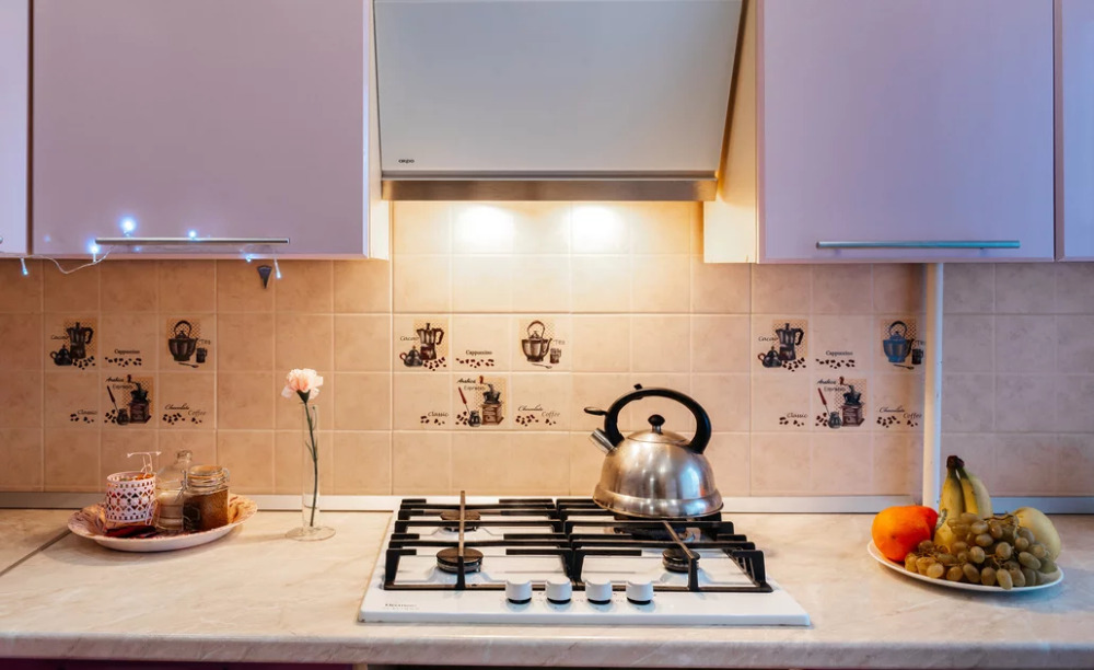 Оборудованная кухня: посуда, холодильник, микроволновка, кастрюли, сковорода, электрический чайник, чай, кофе, сахар.