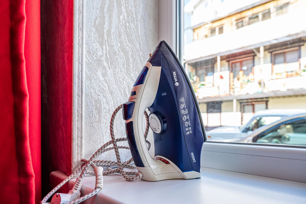 Душ, стиральная машина, фен, утюг, гладильная доска, тапочки, сушилка, шампунь, мыло.