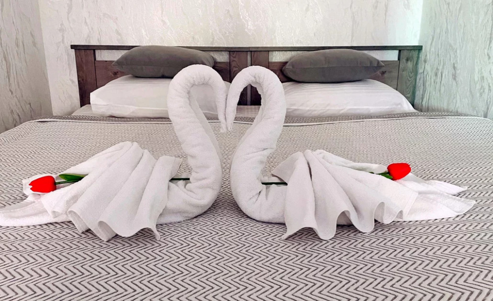 Чистое выглаженное белье премиум класса, пушистые полотенца.