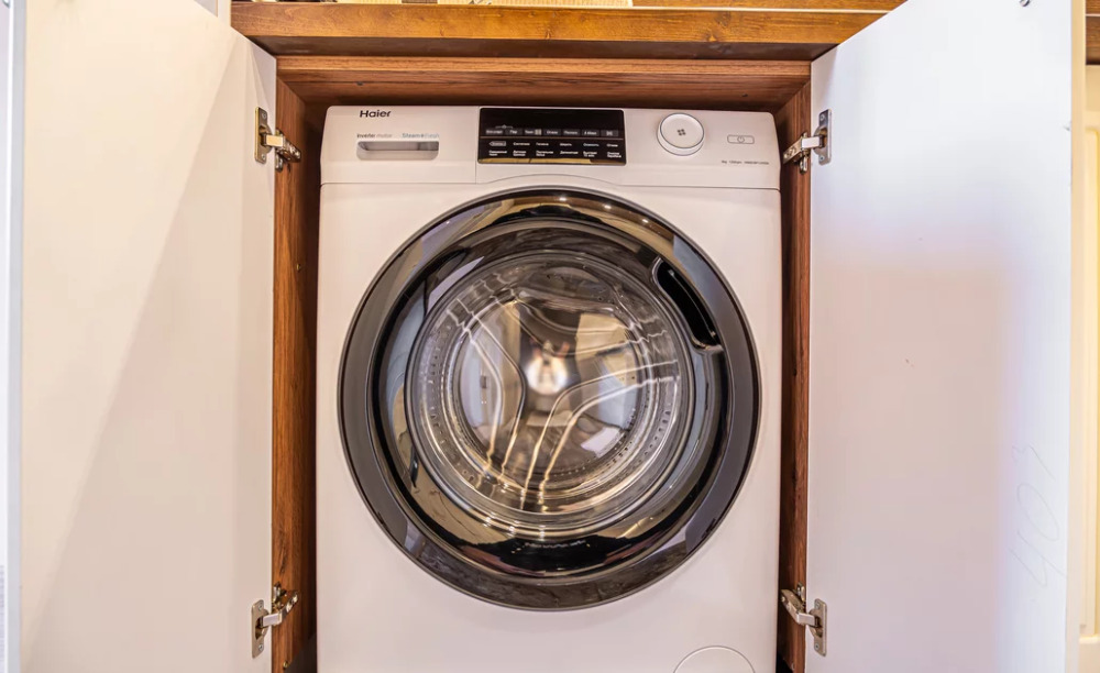 душ, стиральная машина, фен, утюг, гладильная доска, тапочки, сушилка, шампунь, мыло.