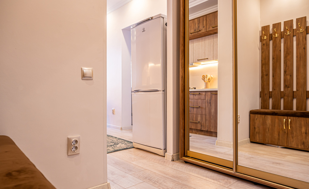 Оборудованная кухня: посуда, холодильник, микроволновка, кастрюли, сковорода, электрический чайник, чай, кофе, сахар.