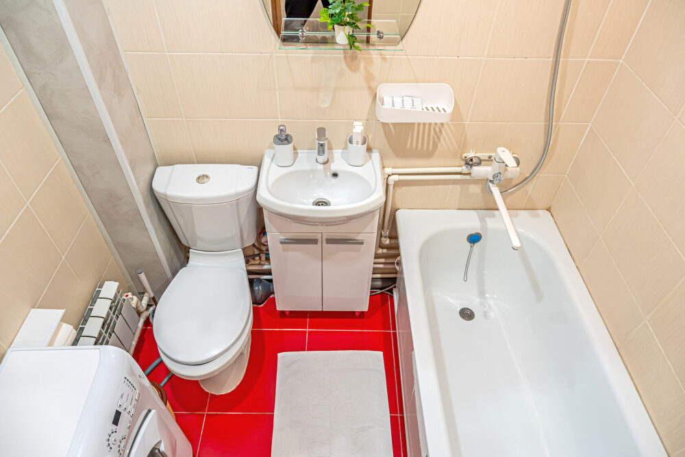 Ванна с душем, стиральная машина, фен, утюг, гладильная доска, тапочки, сушилка, шампунь, мыло.