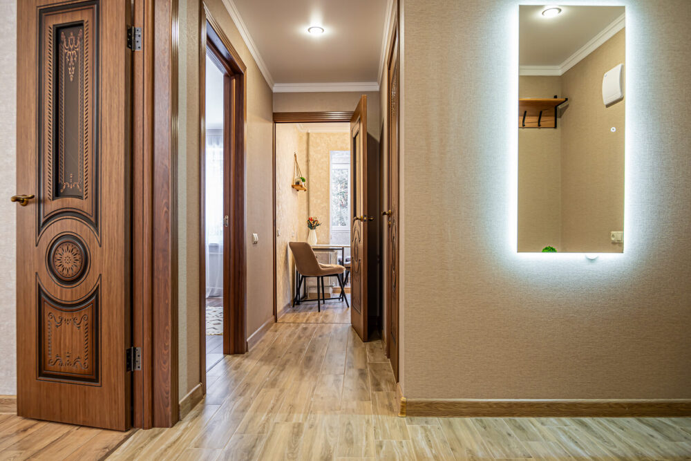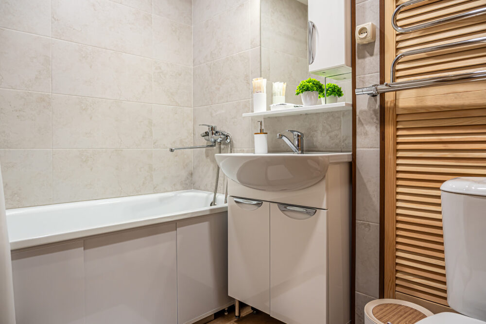 - Ванная с душем, стиральная машина, фен, утюг, гладильная доска, тапочки, сушилка, шампунь, мыло.
