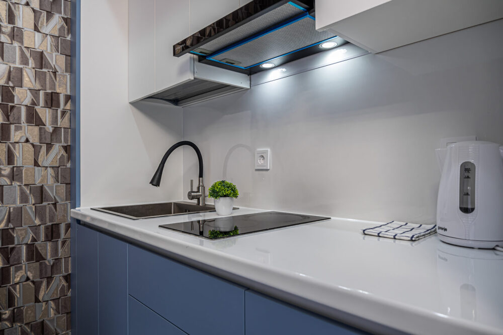 - Оборудованная кухня: посуда, холодильник, микроволновка, кастрюли, сковорода, электрический чайник, чай, кофе, сахар.
